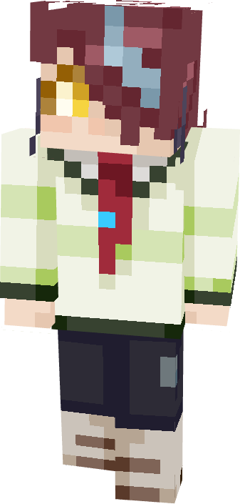 Cherry isn't very tall or physically imposing, around 5'6" and not very strong by himself. He has scruffy red-brown hair with unusual blue and purple streaks, and a very prominent ahoge which emotes with him. He usually wears a green striped sweater and scuffed up old slacks and farm boots, with the most formal part of his outfit being the red tie.