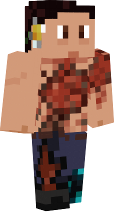 After Finch blew him up, he respawned with a gaping wound that extended out from his chest, all the way down to his non-sculk leg. It can't be healed through normal means. He's opted to go shirtless for the time being, claiming it's because a shirt would irritate the wound.