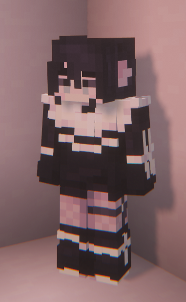 Fravashi has very pale skin, dusty light blue eyes, and dark black hair/fur. He has round ears and a long straight tail that sticks upwards. He stands at about 4'6 and uses his small size to climb into difficult to reach places. He wears loose and flowy black clothing with white accents of lace, frills, and ribbons.