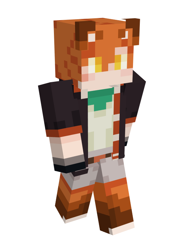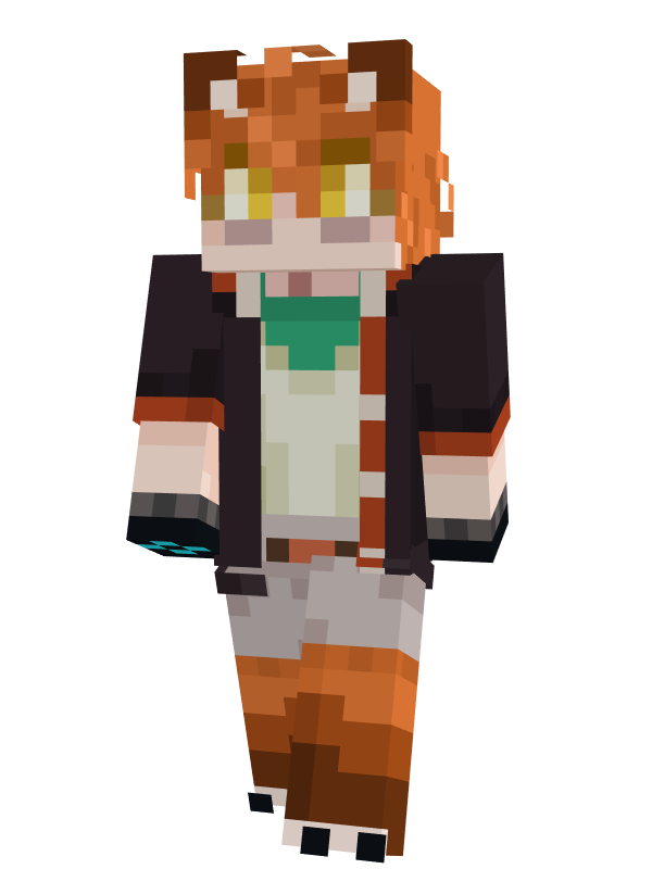 Rhubarb is around 5'6" and fairly skinny. He has dark circles under his eyes from how little he sleeps. Rhubarb is a fox man of some kind, having the lower body and ears of a red fox. He's unable to wear shoes due to his overgrown claws, but other than that he dresses like a normal person. He usually wears a torn-up jacket over a plain shirt and bandana, with shorts over his digitigrade legs. His fingers are stained with sculk, turning them solid black.